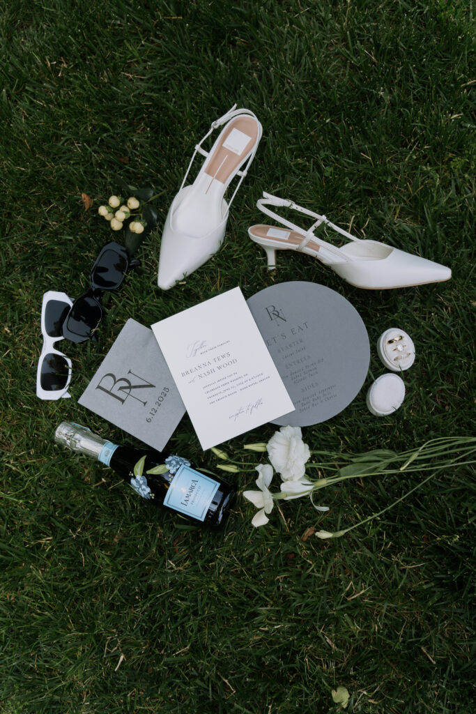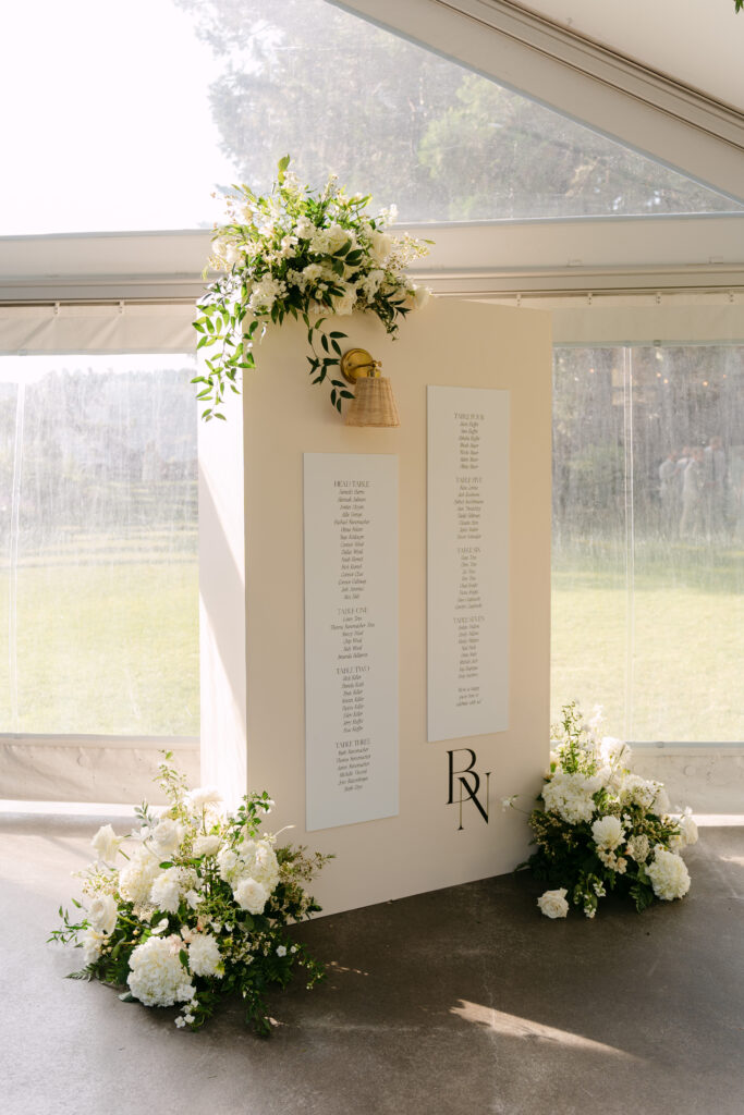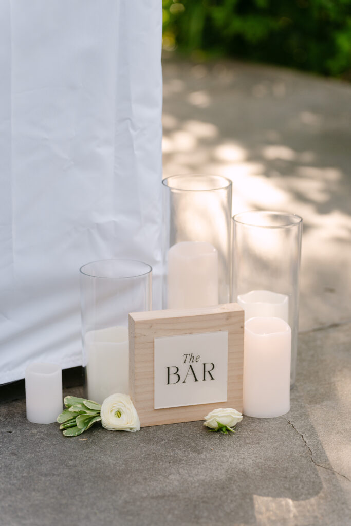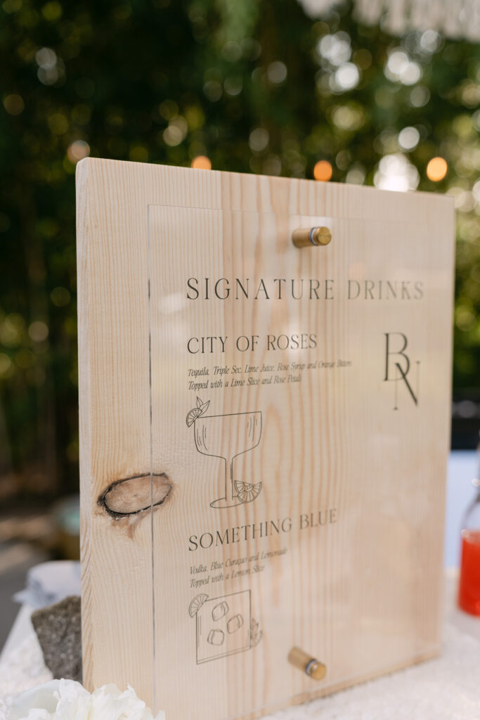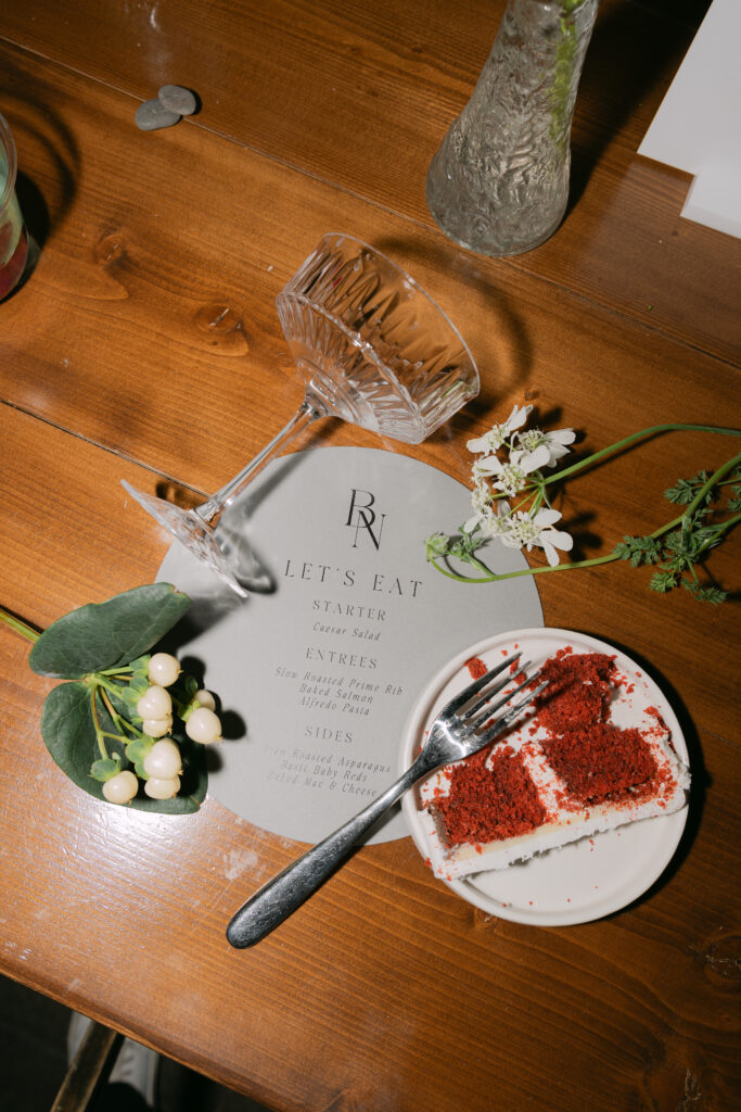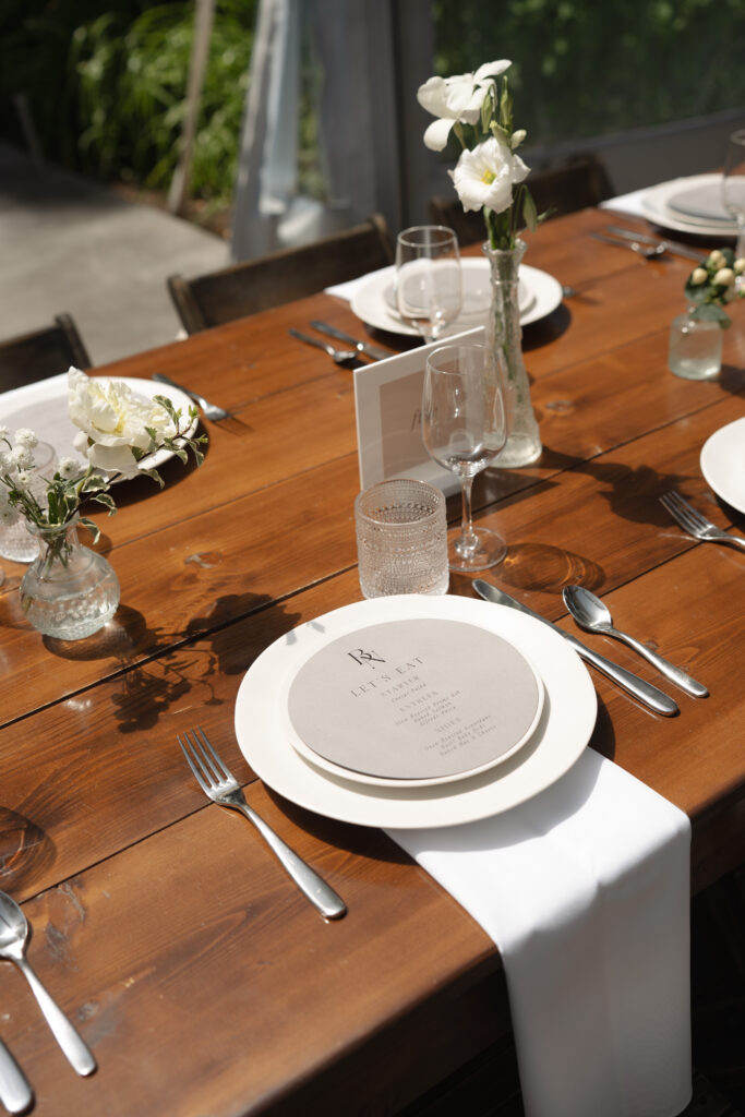 Neutral tones, light wood textures, and strong, bold typography carried through the signage and stationery, bringing cohesion to every part of the day. From the ceremony sign to the large seating display and fun circular menus, each piece reflected a balance of simplicity and sophistication.