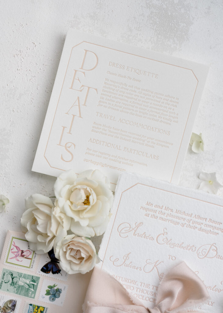Inside the club, the atmosphere was dripping in sophistication. Soft candlelight, lush florals, and classic styling paired beautifully with the structured typography and crisp paper goods. The combination of texture from thick cotton stock to luxe finishes added depth while maintaining a clean, polished aesthetic. It was the perfect balance of traditional and modern luxury without feeling overdone.